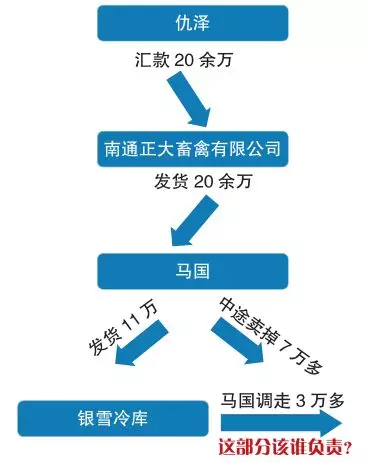 馬國出逃后,仇澤找正大食品(南通)有限公司商量解決方案,最后不得不先接受該公司的提議:正大食品(南通)有限公司以每噸貨少收2000元的方式,先將馬國私挪的貨款7萬多元補(bǔ)齊。但馬國私自將仇澤代儲(chǔ)在銀雪冷庫價(jià)值1萬多元的貨調(diào)出賣掉一事,公司不予承認(rèn);對(duì)于馬國在分銷過程中將1萬多元的貨款私吞一事,也不予賠償。在正大食品(南通)有限公司看來,這都是馬國的個(gè)人行為,與公司無關(guān),同時(shí)希望和仇澤通過法律途徑解決。
