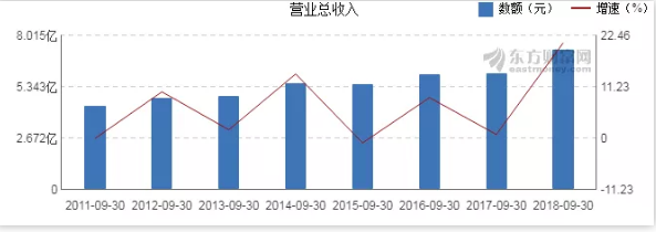 近年來,該公司同期營(yíng)業(yè)收入及增速情況如下圖: