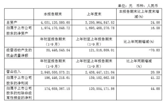 公告顯示,安井食品前三季度實現(xiàn)營業(yè)收入29.4億元,同比增長20.59%;實現(xiàn)凈利潤1.96億元,同比增長41.22%。