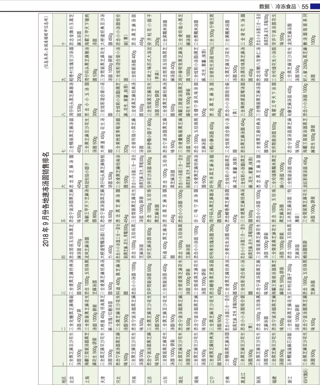 今年9月份各地速凍湯圓銷售排名揭曉,從中我們能看出一些市場特點:
