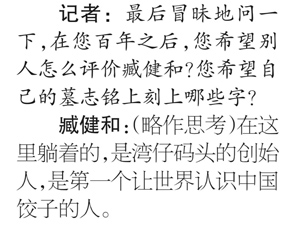 我至今記得采訪的最后一個問題,當時了解到臧阿姨喜歡逛墓地、看墓志銘,就冒昧地問了她一個問題,百年之后您希望墓志銘上寫上什么字呢?她略作思考說:在這里躺著的,是灣仔碼頭的創(chuàng)始人,是第一個讓世界認識中國水餃的人。