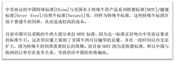 同時(shí),由于標(biāo)準(zhǔn)較高,屬于特殊牛標(biāo)準(zhǔn),造成生產(chǎn)、加工以及市場(chǎng)銷售的價(jià)格居高不下。并未達(dá)到市場(chǎng)對(duì)于美國(guó)牛肉成本優(yōu)勢(shì)的預(yù)期。