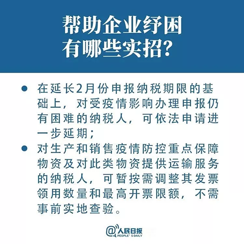 ●針對疫情防控物資生產的中小微企業,優先核準延期繳納稅款。
