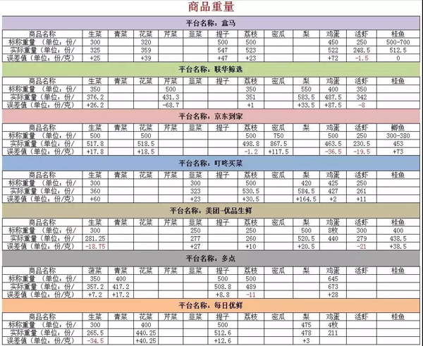 △ 各平臺商品重量測評詳細數據