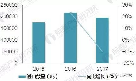 △2015-2017年中國冷凍雞翅進口量變化情況(單位:噸)數據來源:海關總署
