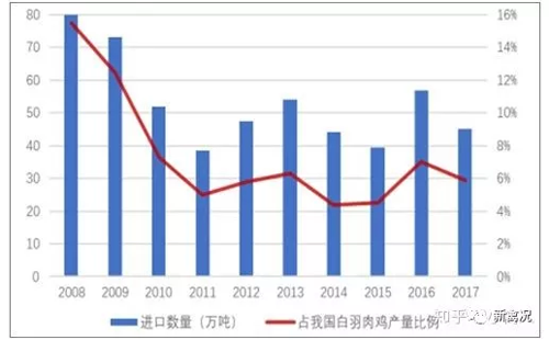 事實上,我們國家還有相當部分的雞肉進口,這部分基本為雞腿雞翅和雞爪,出口是雞胸肉為主。我國內地 2017 進口 45