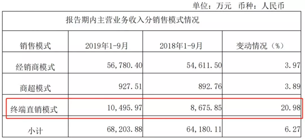 從上圖可知,前三季度,惠發食品的終端直銷渠道增幅較大,為20.98%,相比其他兩個渠道,一騎絕塵。