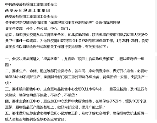 五得利公眾號也發文:考慮到當前出現的物資供應不足的苗頭,五得利面粉集團董事會領導及員工提前停止休假,15個子公司部分重要崗位員工已于正月初三返廠,應對全國人民對面粉的需求,為保障全國市場面粉供應做好準備,五得利面粉集團將竭盡全力,勇于擔當,全力以赴,保障人民群眾對面粉的需求!