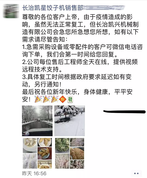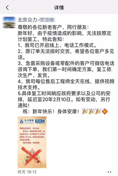 一些設備企業(yè)雖然暫時不能恢復生產(chǎn),但開始了線上辦公,紛紛發(fā)圈表示:公司技術人員、售后人員提供視頻遠程技術支持,也是棒棒噠!