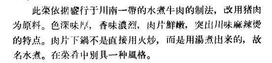 ▍1960 年,第二商業部飲食業管理局編撰的《中國名菜譜》中,要求把水煮肉片做出川味「麻辣燙」的特點。