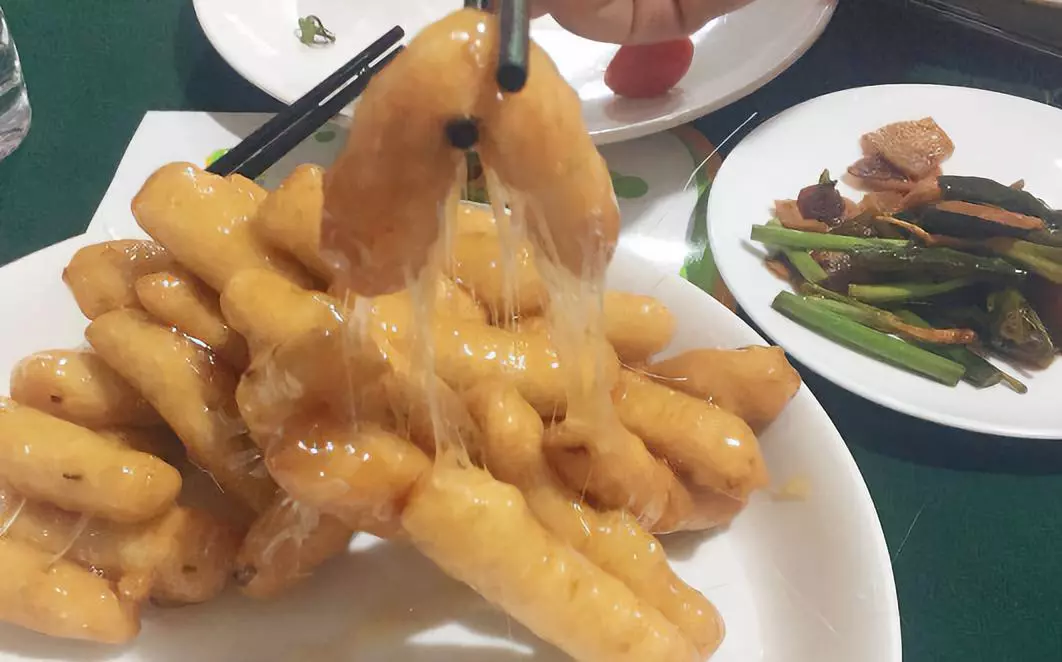 值得一提的是,不僅鋪貨渠道廣泛,蔥香小油條的新吃法也是層出不窮。在東北,將蔥香小油條串成串已經成為了當地燒烤的新菜品,另外還有糖醋油條、辣炒油條等諸多創新吃法、創新擺盤形式出現,令人大飽眼福。