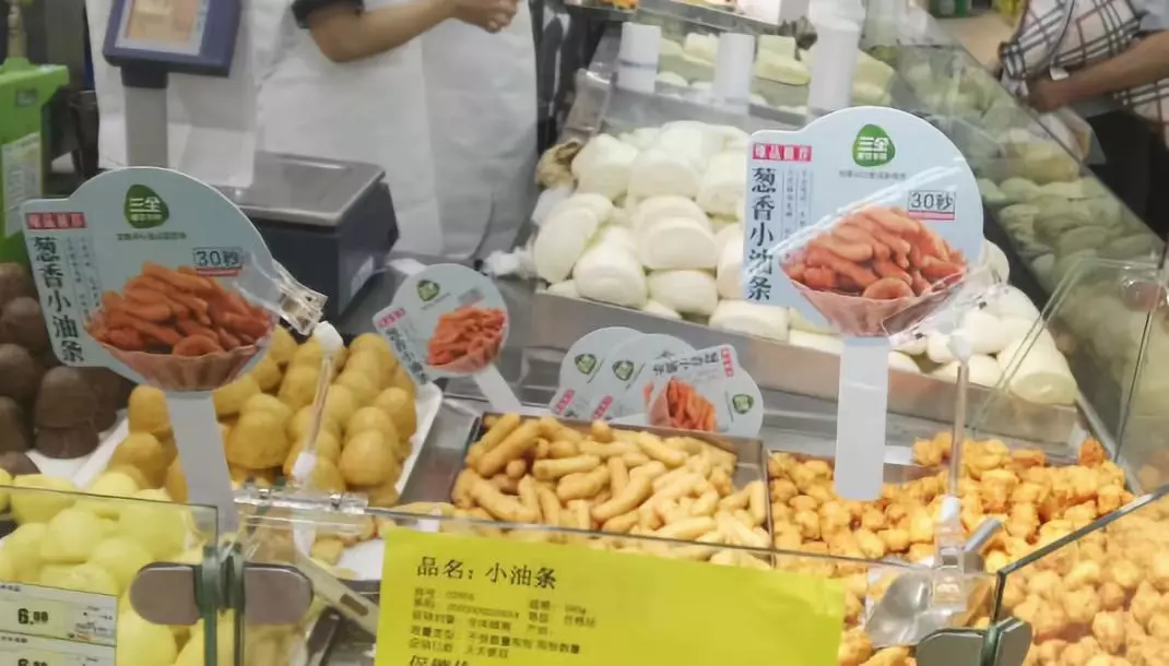 而在河南鄭州的永輝超市、山東大潤發等超市的熟食區,蔥香小油條也成了明星單品。店員反饋說,蔥香小油條還在復炸的時候就有顧客排隊等著了,這種情況在超市一般只有在促銷售賣雞蛋的時候才會出現,可見對蔥香小油條是“真愛”。