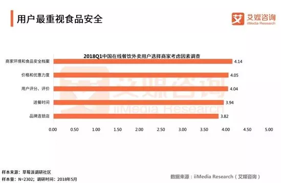 艾媒咨詢分析師認為,隨著外賣成為普及化的就餐方式之一,人們越發(fā)依賴在線餐飲外賣,加之以近期頻發(fā)的食品安全事件渲染,人們對外賣平臺食品安全的重視程度顯著提高。