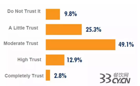 根據(jù)TrendSource近期基于美國便利店內(nèi)鮮食(炸雞、熱狗、Nachos)的調(diào)查,近一半(49.1%)的消費(fèi)者認(rèn)為對于店內(nèi)鮮食的安全性、食物質(zhì)量適度信任,僅有2.8%的消費(fèi)者完全信任其質(zhì)量,另外合計(jì)約35%的消費(fèi)者完全或基本不信任其質(zhì)量。