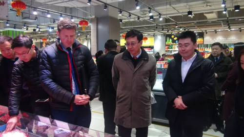 啟動儀式之后,樊偉龍陪同劉孟澤、韓振岐等領導,共同參觀了城鄉超市中澳洲冰鮮牛肉的銷售排面,來自大洋彼岸、原包原味的澳洲冰鮮牛肉吸引了大家的注意。