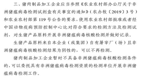 此次新規的發布,意味著此爭議話題有了官方結論:“豬肉制品加工企業也需對生豬原料進行非洲豬瘟病毒檢測。”
