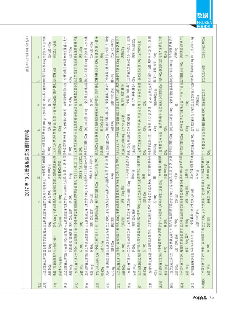 ▼2017年11月份各地速凍湯圓銷售排名