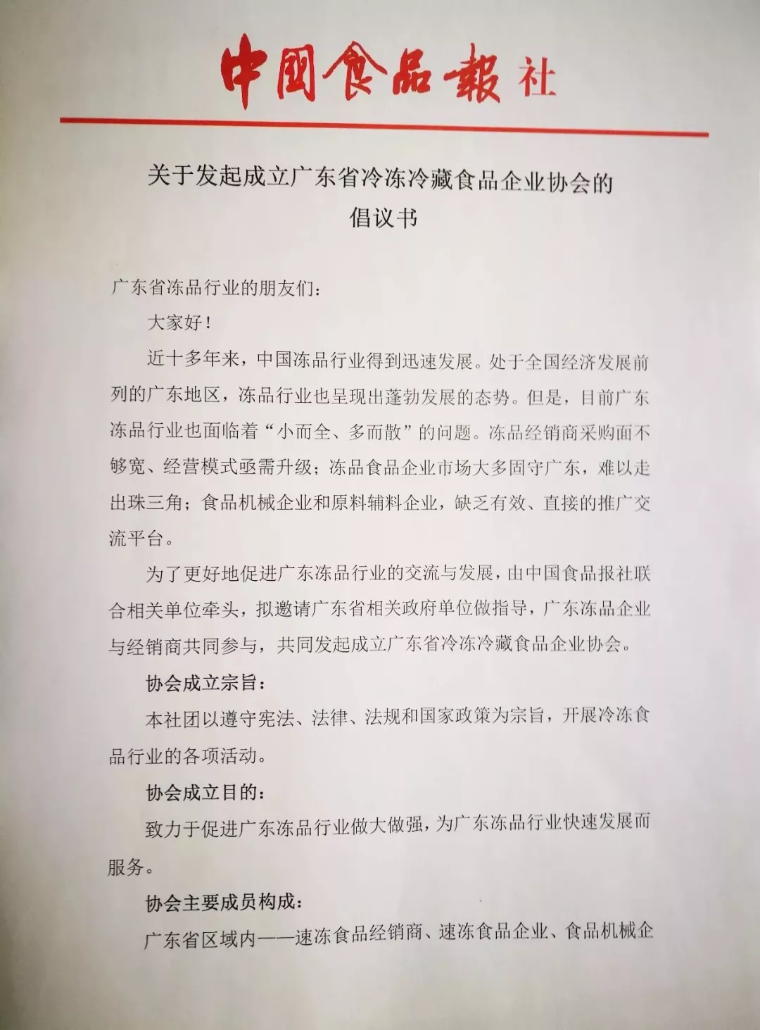 由《中國食品報》《現代食品》雜志社牽頭,擬邀請廣東省相關政府單位做指導,廣東凍品企業與經銷商共同參與,共同發起成立廣東省冷凍冷藏食品企業協會。
