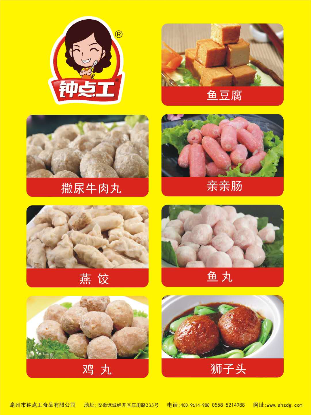來源: 冷凍食品網 發布者:編輯亳州市鐘點工食品有限責任公司成立于2008年12月,是一家集研發、生產加工、銷售、服務于一體的綜合性速凍食品企業,占地22.05畝(合14700多平方米),總建筑面積18000多平方米。其中生產車間7000多平方米,冷庫10000平方米,辦公樓1600多平方米,輔助用房500平方米。購置16條速凍食品生產線、冷凍等設備。擁有年生產10000噸自動水餃、餛飩生產線車間、年生產3000噸自動湯圓生產線車間,年生產10000噸火鍋料理系列生產線車間,年生產3000噸自動包裝生產線三條,主要生產設備、儀器60多臺套,均具國內領先水平。