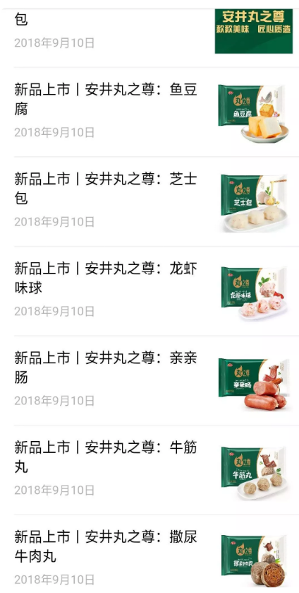2018年8月27日,安井食品微信公眾號推送《丸之尊,全新上市!》一文,以“每一顆丸子都不將就”為口號,推出魚籽包、魚豆腐、芝士包、龍蝦味球、親親腸、撒尿牛肉丸、牛筋丸等多款全新升級產(chǎn)品。